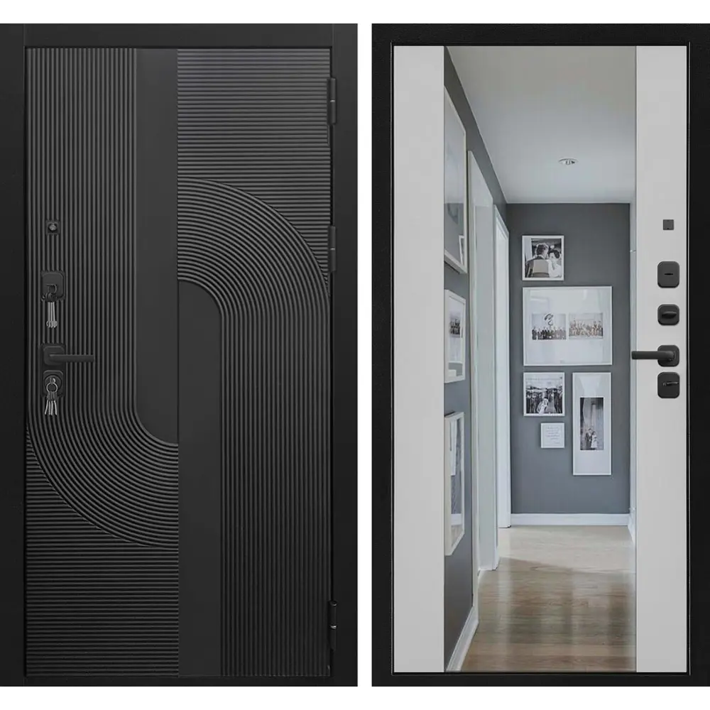 Входная дверь «ОРБИТА 3К Z ЧЁРНАЯ / БЕЛАЯ ШАГРЕНЬ (ЗЕРКАЛО)» от компании Modern в Кореновске